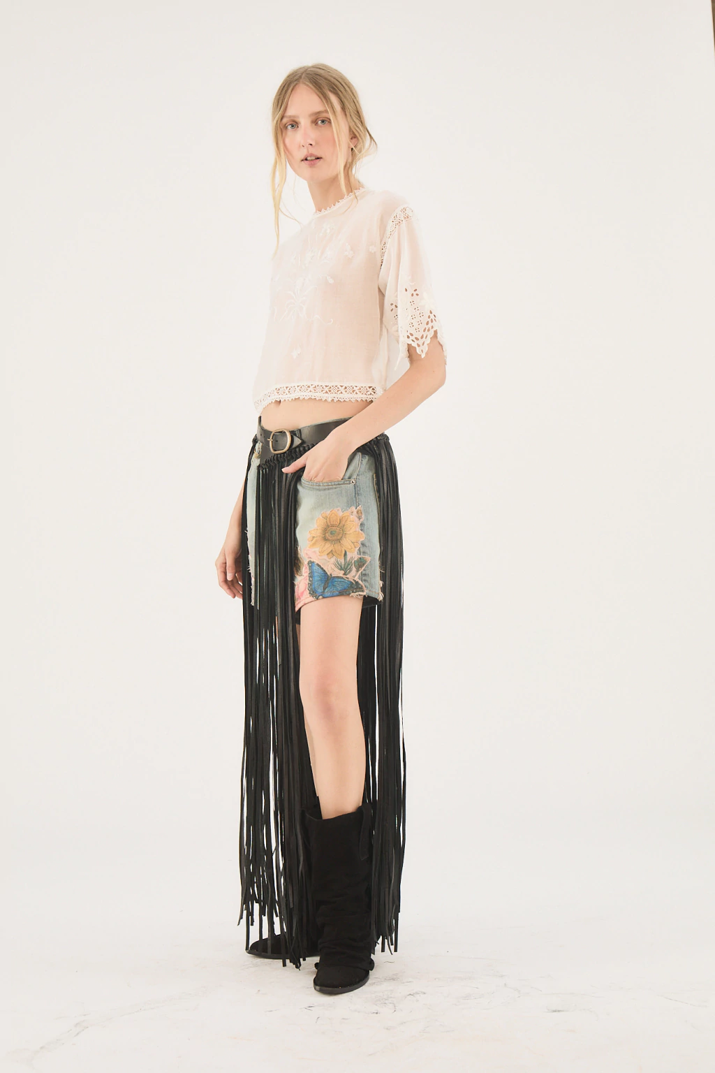 Short con apliques estampados.